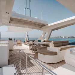 Step aboard the 87-foot Ferretti yacht and enjoy a luxurious Miami experience. Perfect for private charters, social gatherings, and special celebrations, this yacht offers elegance, space, and modern amenities to make every moment unforgettable.