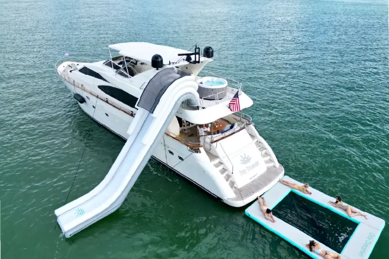 Your yacht rental includes a professional captain, fuel, ice, water, and a floatable mat. This ensures a seamless experience from start to finish. Because everything is included, you can focus on making memories without worry.