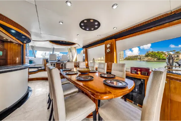 With its spacious layout, elegant design, and luxury amenities, this 94 ft Sunseeker yacht delivers a top tier Miami yacht rental experience. Whether you plan a short cruise or a special celebration, this yacht offers an unforgettable day on the water.