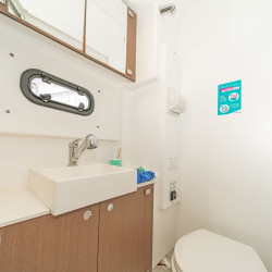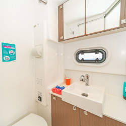 Enjoy modern amenities such as electric toilets, fans in all cabins and saloon, and solar panels for energy efficiency. Relax under the bimini top, take advantage of the dinghy with outboard motor, and enjoy smooth sailing with a full batten mainsail and self-tacking jib. Book now at supremeyachtcharters.com