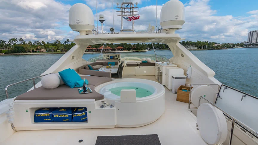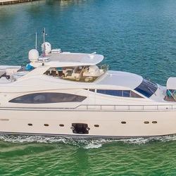 Cinque is an 88 ft Ferretti Flybridge luxury motor yacht available for private charter in Miami, Florida, offering classic Italian craftsmanship, spacious outdoor areas, and refined onboard comfort. Ideal for upscale day charters and extended cruising, Cinque delivers a smooth and elegant yachting experience in South Florida.