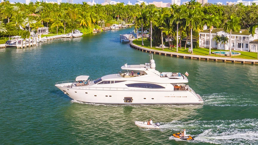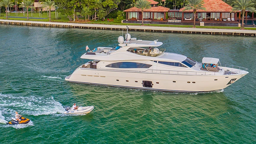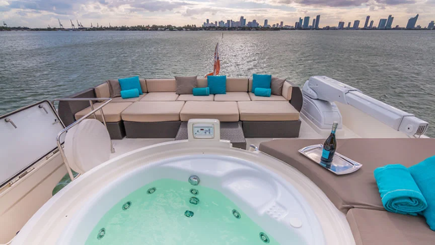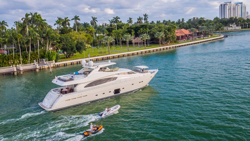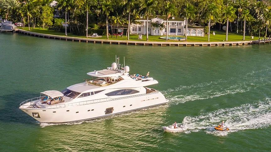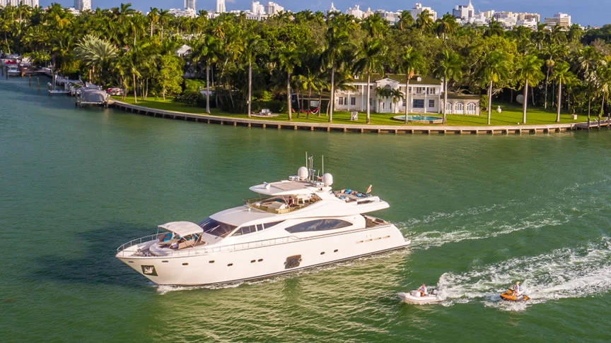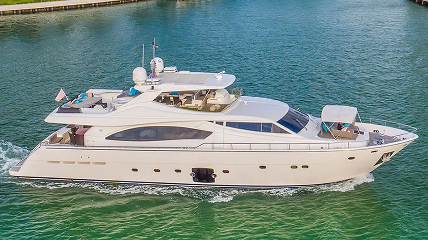 Cinque 88ft Ferretti Flybridge Yacht Charter in Miami Florida Featured