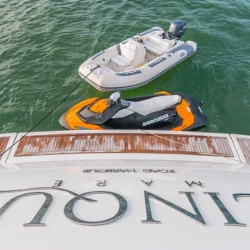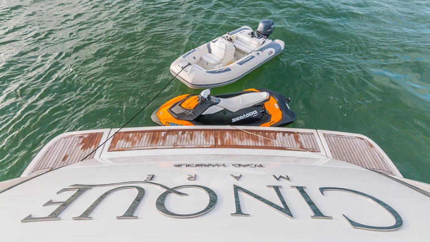 Cinque is equipped with a Jet Ski, center console tender, jet boat, and water toys, making her perfect for swimming, island hopping, and fun-filled days on the water. A professional 3-person crew ensures a seamless and luxurious charter experience.
