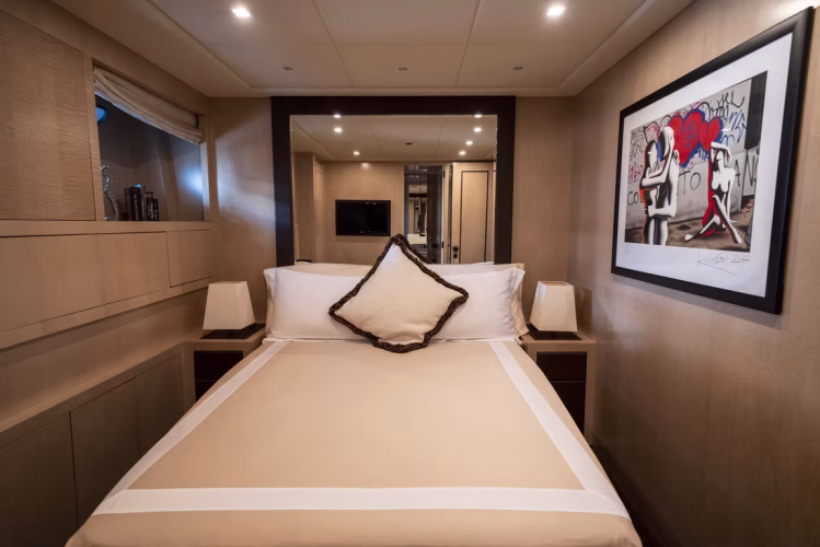 Step aboard the Mangusta 92, a high-performance Italian yacht designed for speed, elegance, and luxury. Docked in Porto Cervo, Sardinia, this yacht is perfect for those seeking an adrenaline-filled cruise or a glamorous lifestyle experience along the Mediterranean coast.Elegant Guest Accommodation