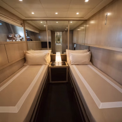 The yacht features 4 cabins accommodating up to 12 guests. Each cabin includes en-suite bathrooms, comfortable beds, and refined interiors, offering the perfect balance of privacy and luxury during your journey.Sleek and Stylish Design